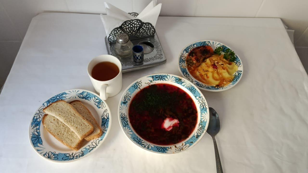 1. Борщ с фасолью/сметаной