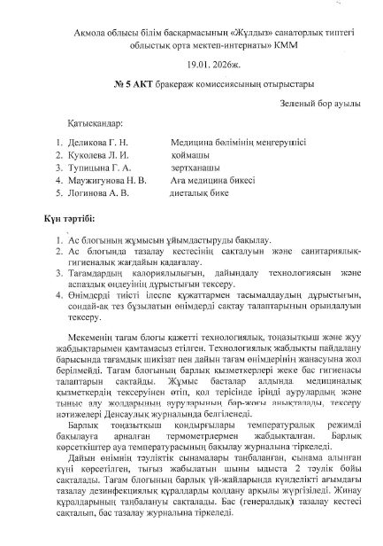 Акт№5 бракераж комиссиясының отырыстары 19.01.2026г