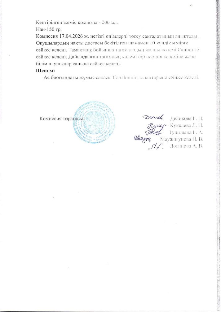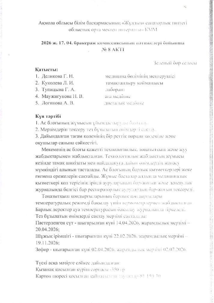 2026 ж. 17. 04. бракераж комиссиясының нәтижелері бойынша № 8 AКTI