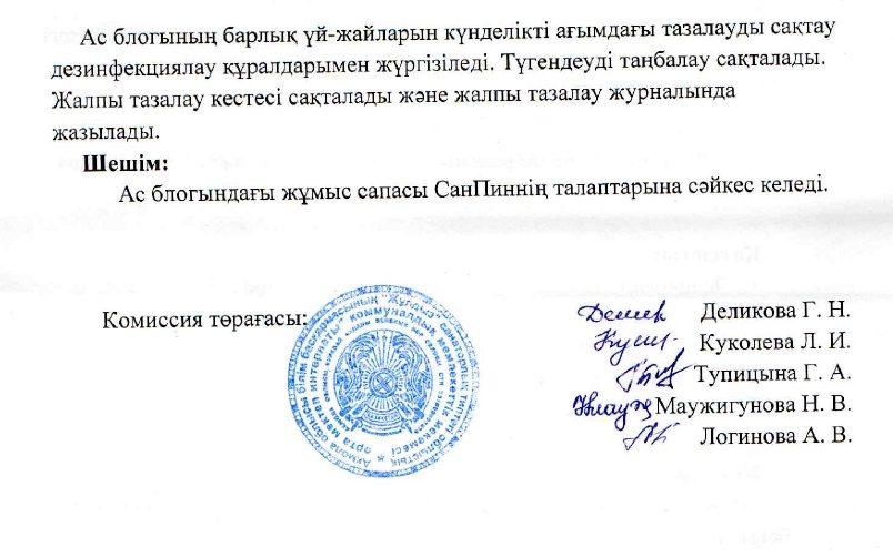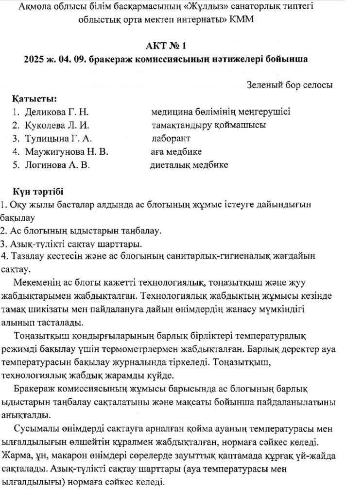 Акт №1 2025 ж. 04. 09. бракераж комиссиясының нәтижелері бойынша