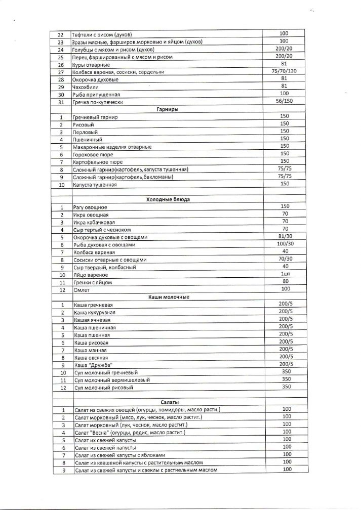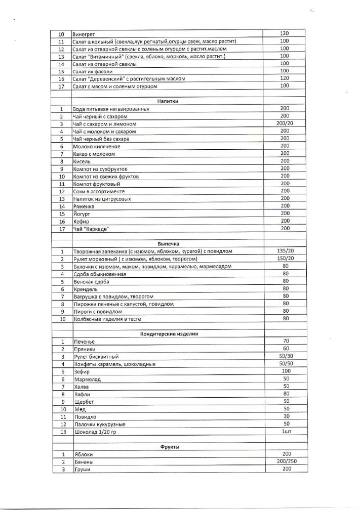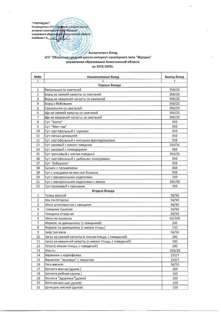 2025–2026 жылдарға арналған тағамдар ассортимент