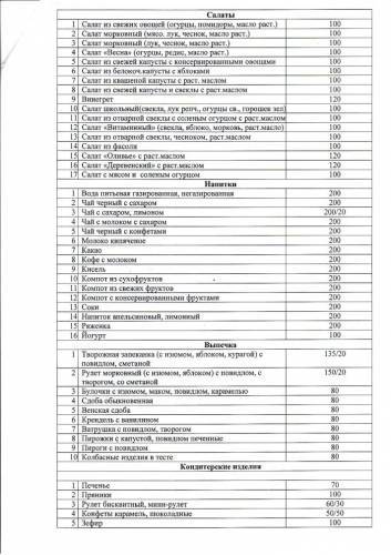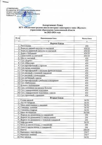 Ассортимент блюд 2023-2024