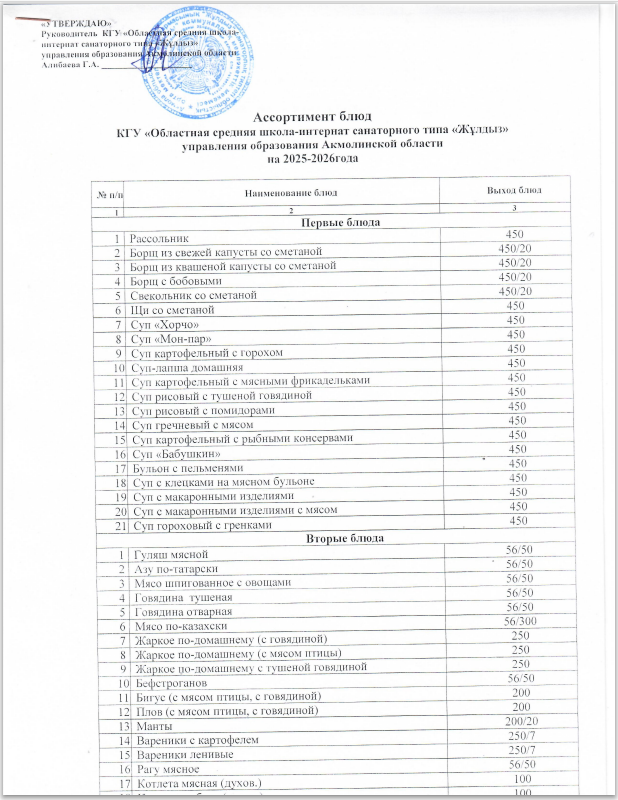 2025-2026 оқу жылына арналған перспективалық мәзір