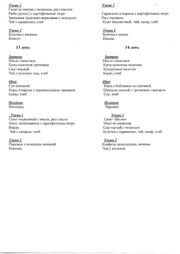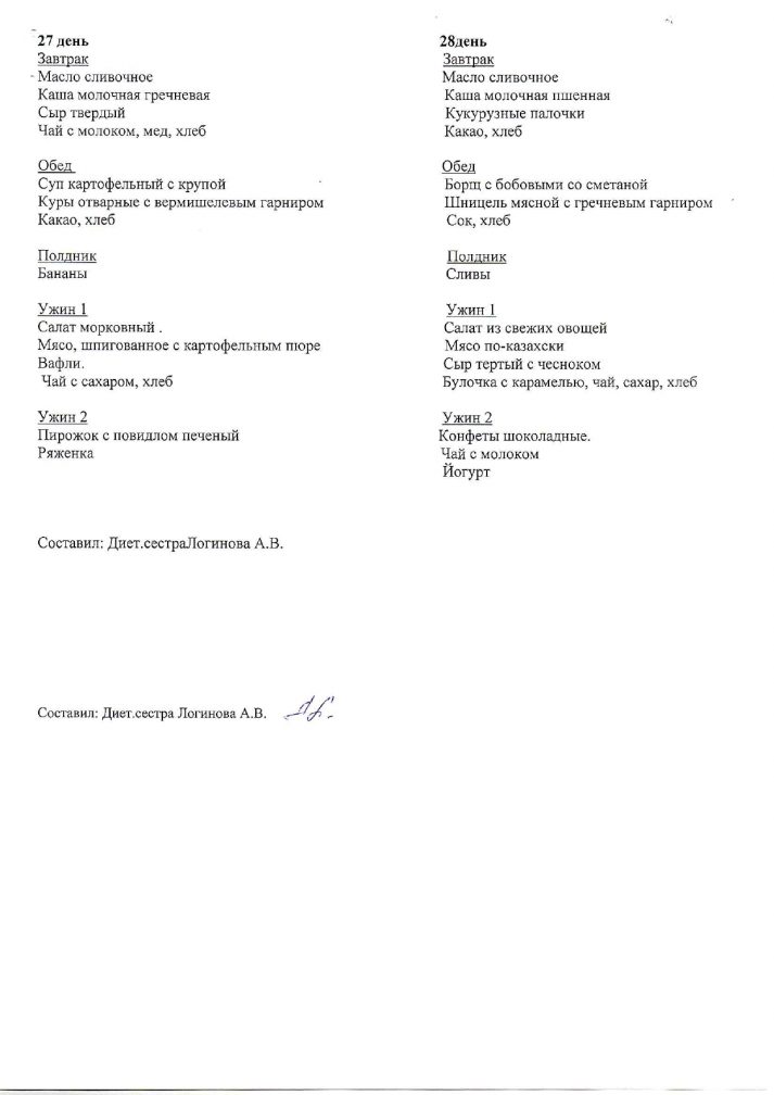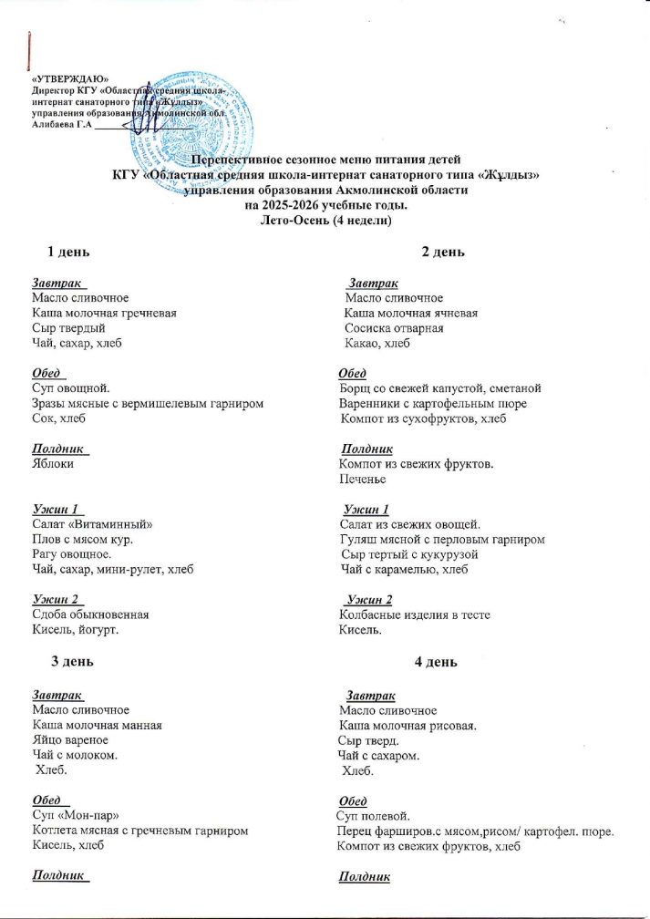 2025–2026 оқу жылына арналған балалардың маусымдық перспективалық тамақтану мәзірі жаз-күз (4 апта)
