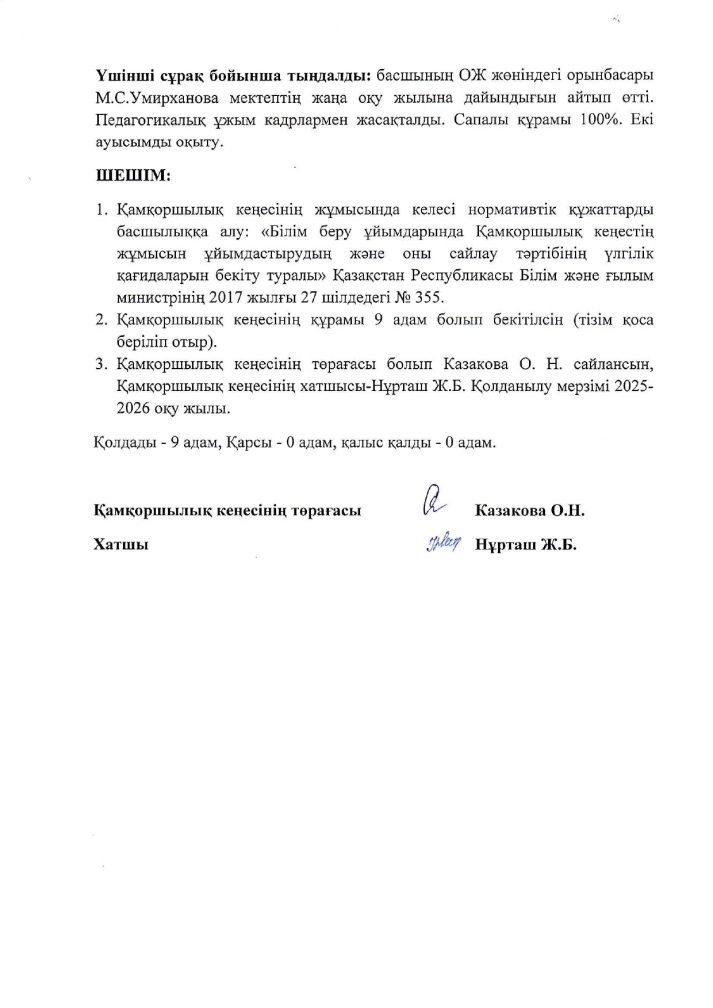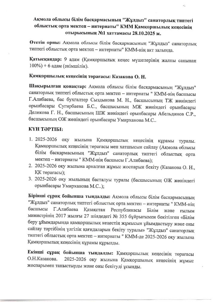Қамқоршылық кеңесінің отырысының №1 хаттамасы 28.10.2025 ж.