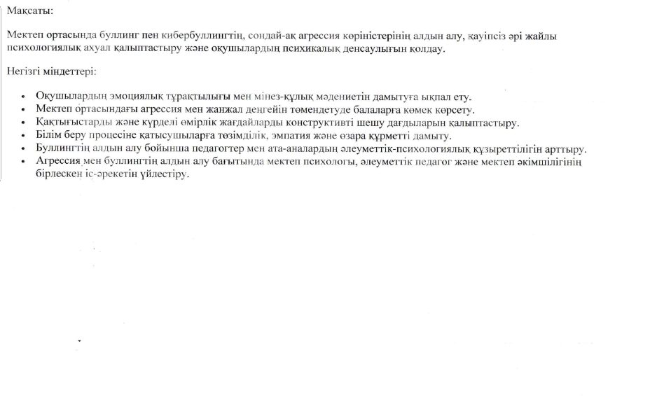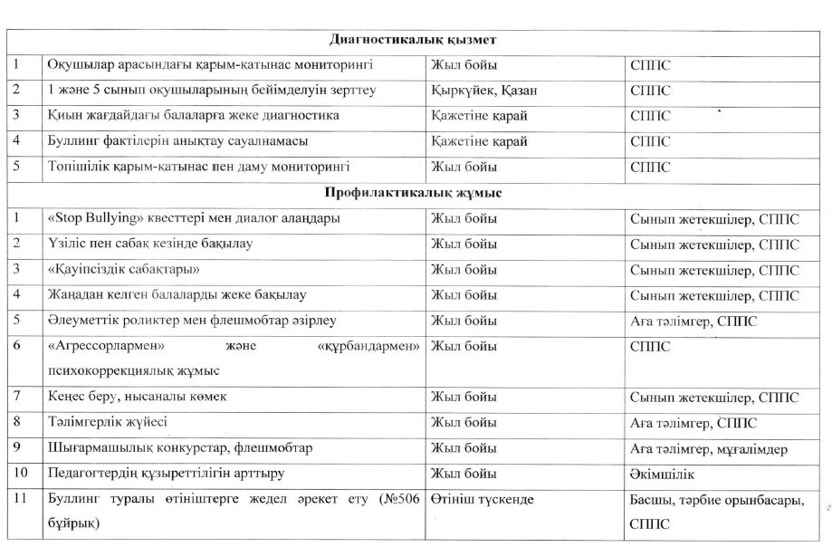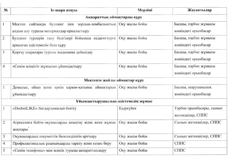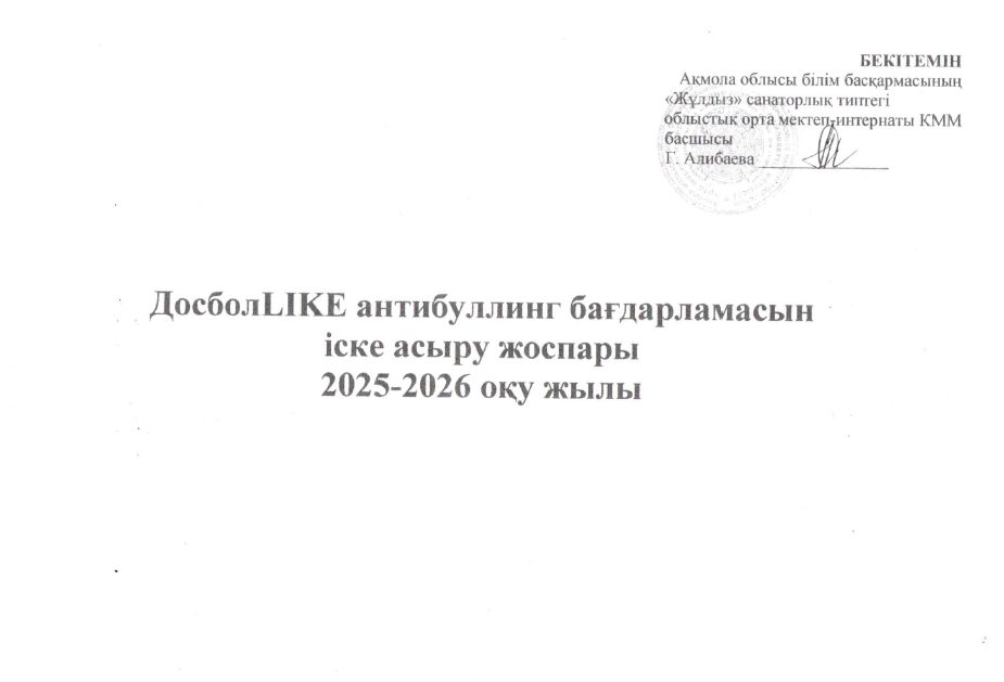 ДосболLIKE антибуллинг бағдарламасын іске асыру жоспары 2025-2026 оқу жылы