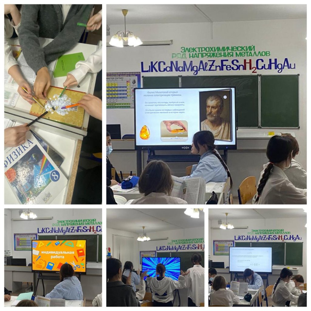 24 қараша күні физика пәні мұғалімі апталық аясында Айткен Бакытбек Айтпайулы 8 "А" сыныбында "Электрический заряд, электризация тел" атты тақырыпта ашық сабақ өткізді